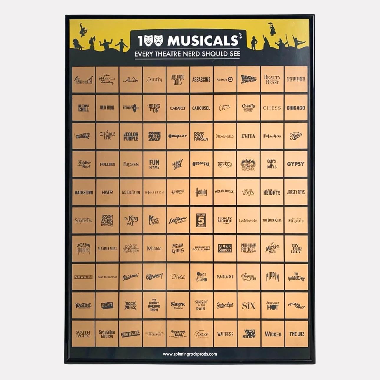 Con 100 de los musicales más populares de Broadway y West End, desde clásicos (Les Mis, Chicago, West Side Story, Grease, etc.) hasta contemporáneos (Hamilton, Dear Evan Hansen, Beetlejuice, Heathers, Seis, etc.).