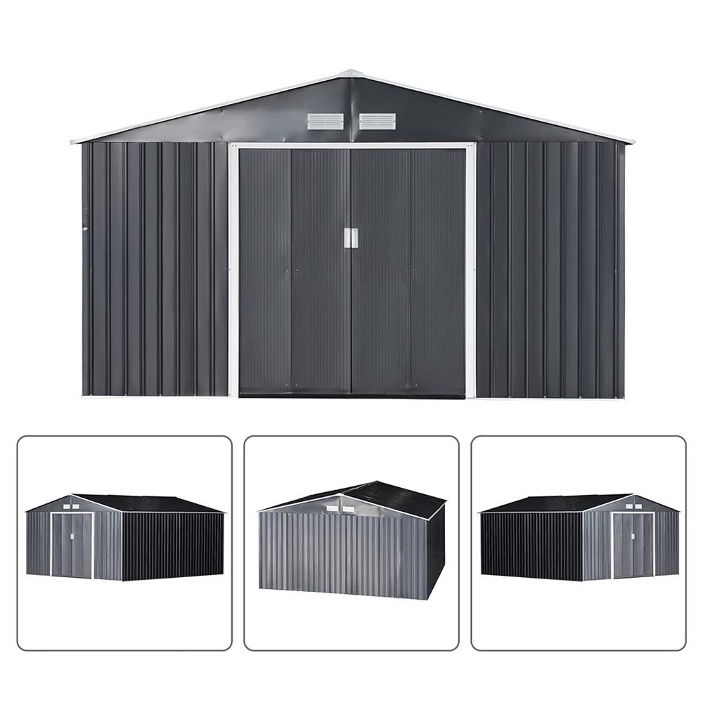 Espaciosa y práctica: Con unas dimensiones generosas de 340x386x200cm y una superficie útil de 13,1m², esta caseta de jardín es ideal para guardar todo tipo de herramientas, equipos de jardinería y accesorios. Además, su diseño la hace perfecta como caseta de obras.
