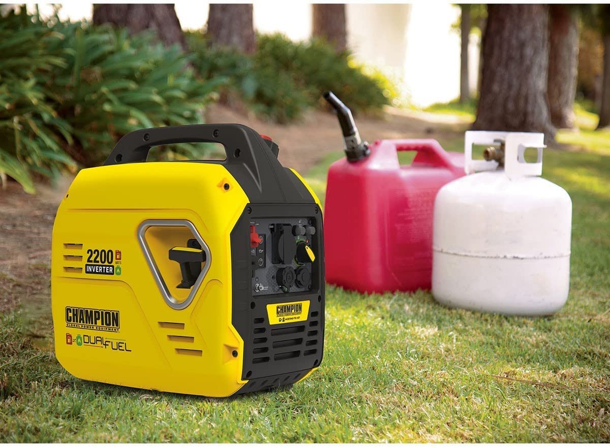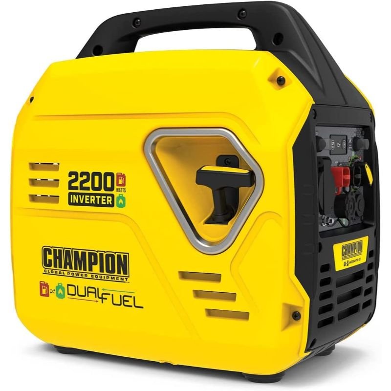 Grupo electrógeno híbrido ultra silencioso gasolina/gas 2200W Motor 4T CHAMPION Inverter Protección AVR Autonomía 23h.