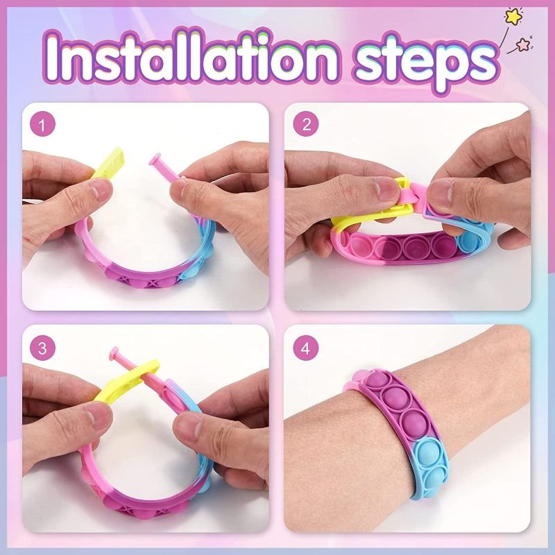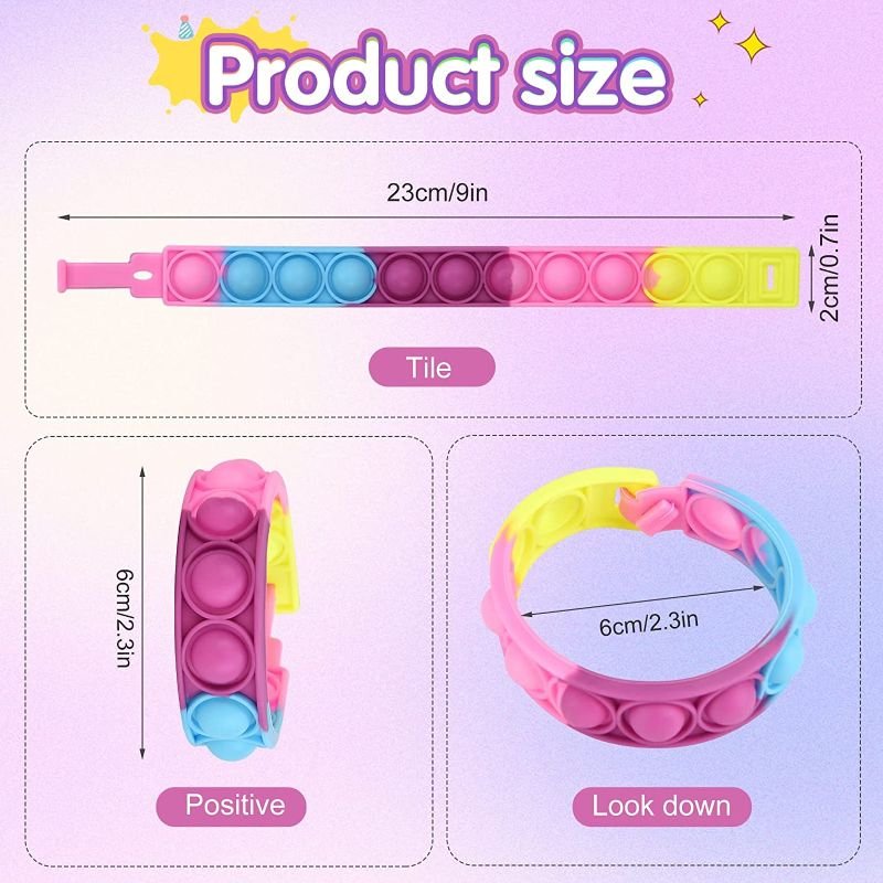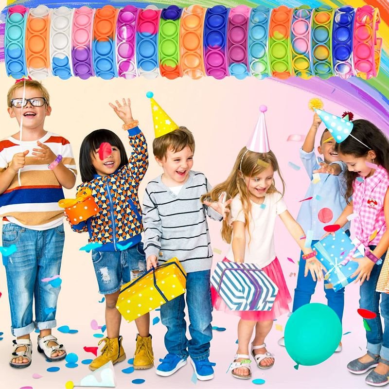 El set consta de 34 pulseras, disponibles en varios colores de moda, estas pulseras de silicona suave son el juguete perfecto para aliviar el estrés y la ansiedad en cualquier momento y lugar.